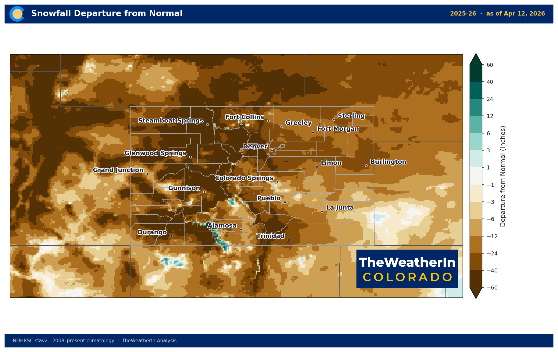The result was a statewide snowfall deficit that, for many locations, ranks among the 3–5 worst on record in the NOHRSC dataset going back to 2008.