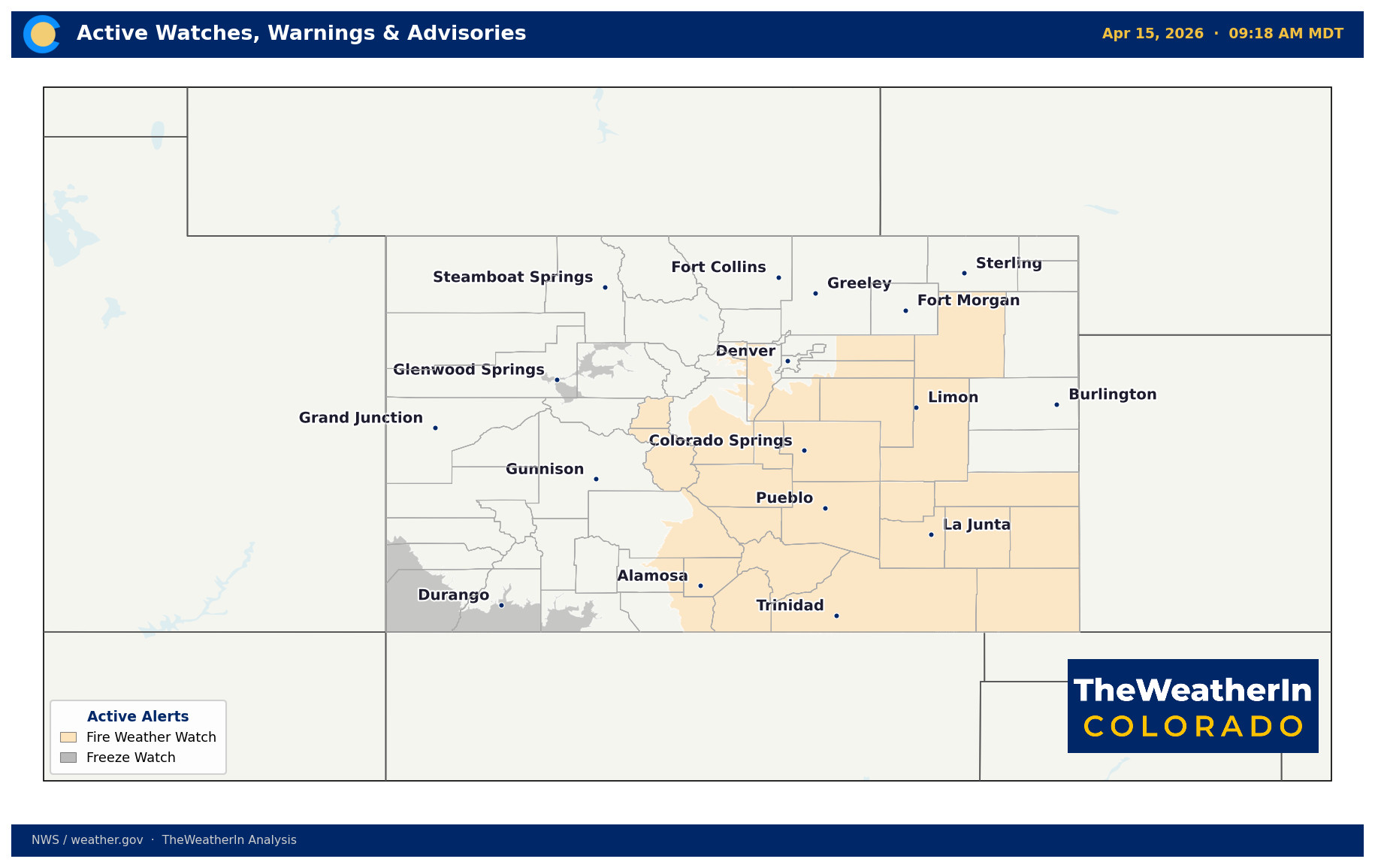 After a drier Wednesday, Colorado faces two back-to-back hazards before the weekend: critical fire weather on Thursday, followed by a hard freeze on Friday night into Saturday.