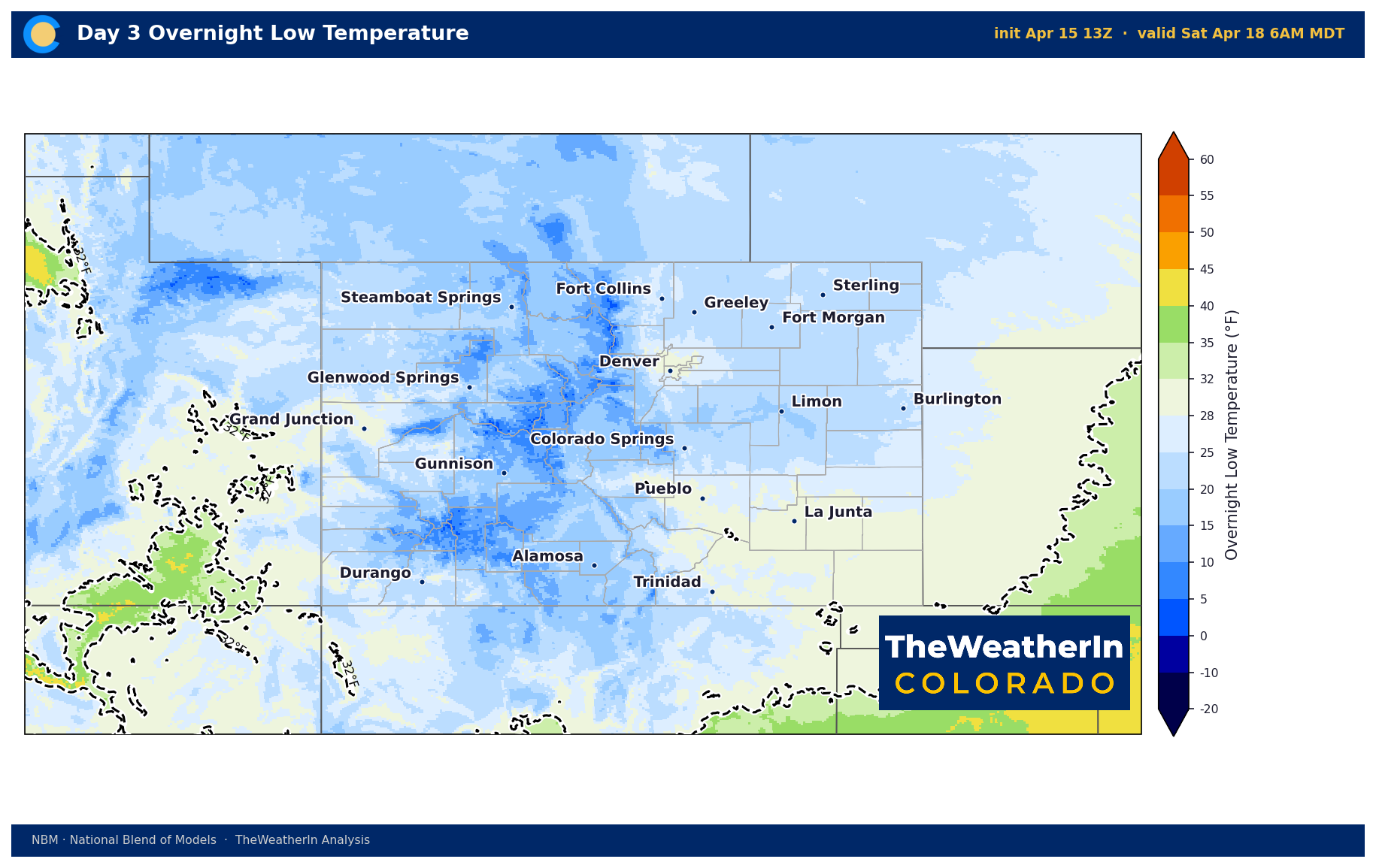 This is the headline for agricultural operations. Once the system clears out Friday night, skies clear rapidly and temperatures crash. A hard freeze is expected for nearly all of Colorado.